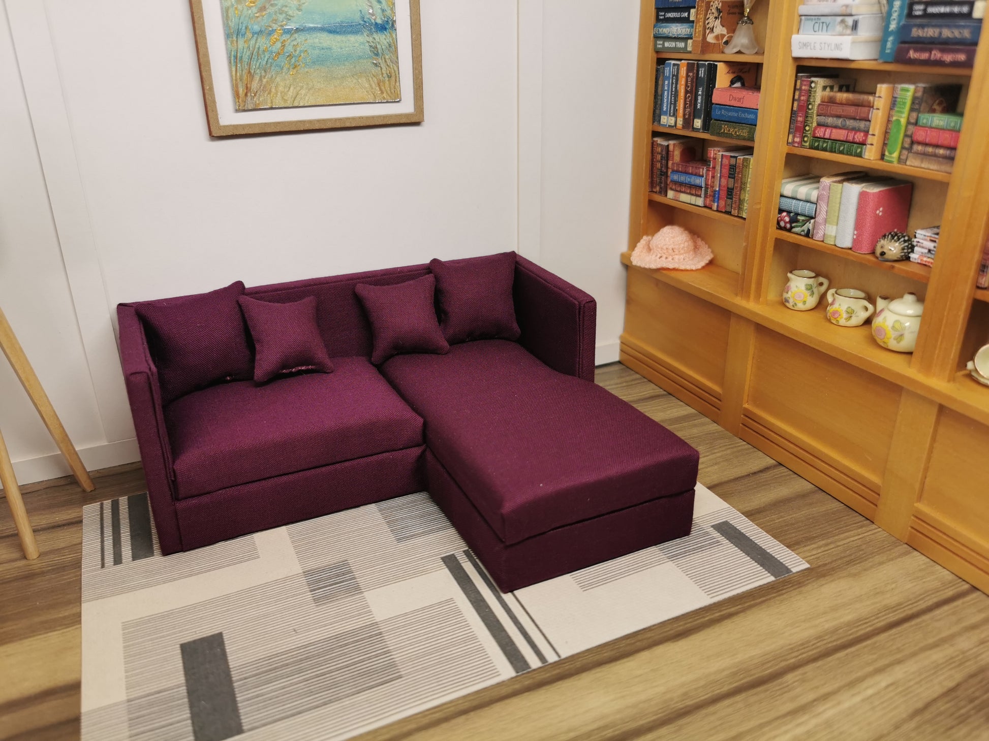 2 Seater Corner Sofa | 1:12th Scale | Made To Order | Cushions/Pillows included | Handmade