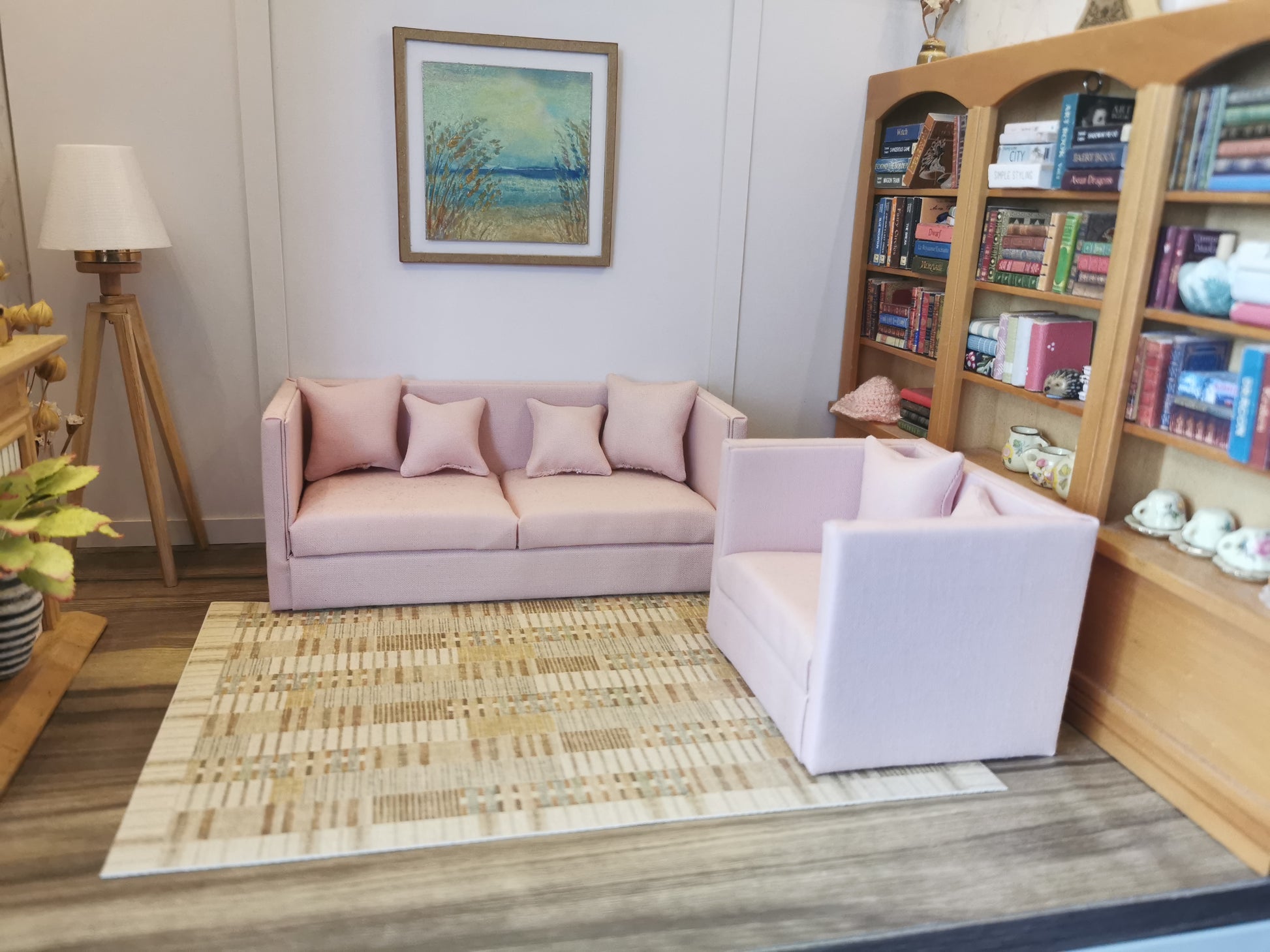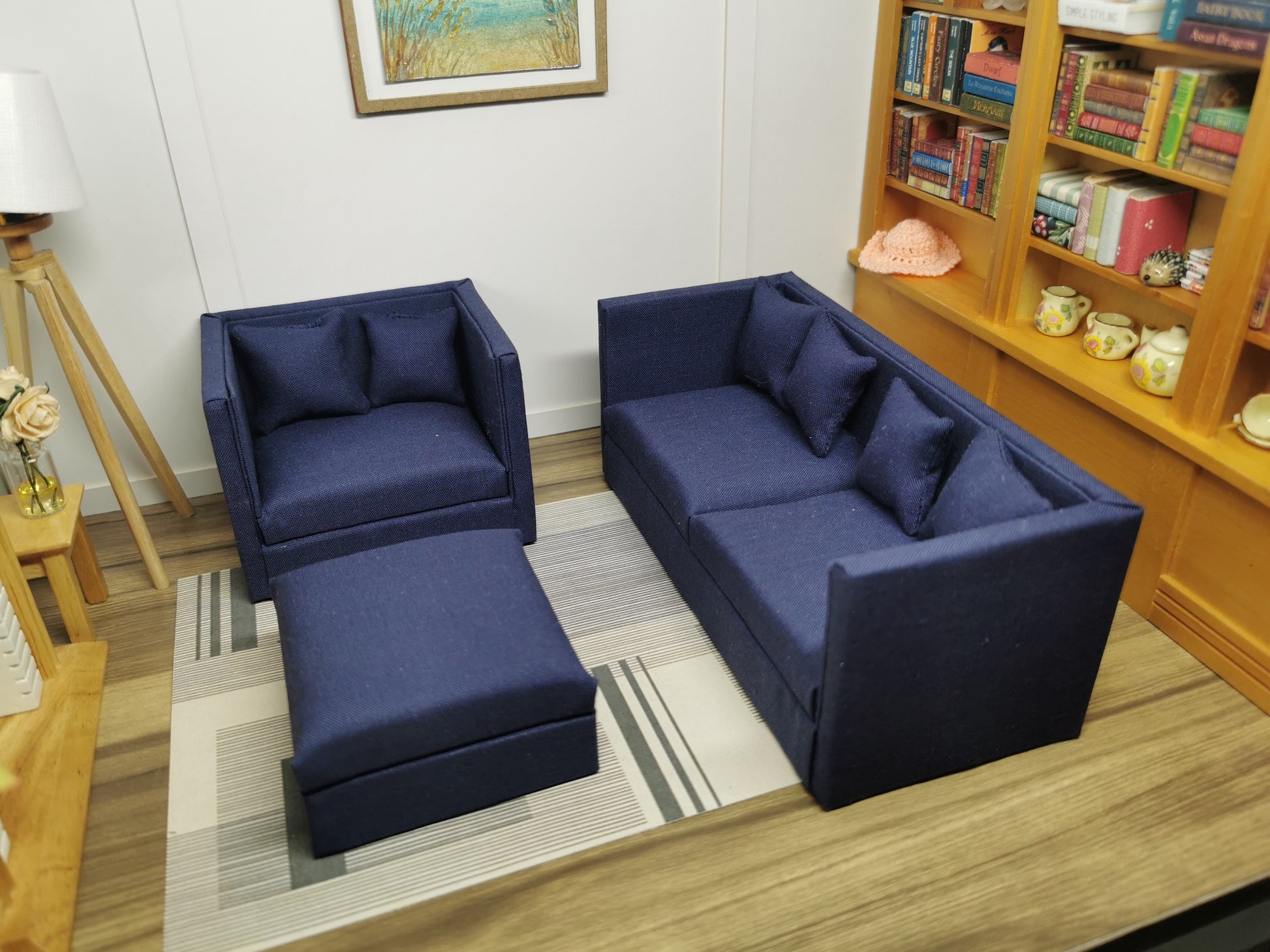 2 Seater Sofa, Chair & Ottoman Set | 1:12th Scale | Made To Order | Cushions/Pillows included | Handmade