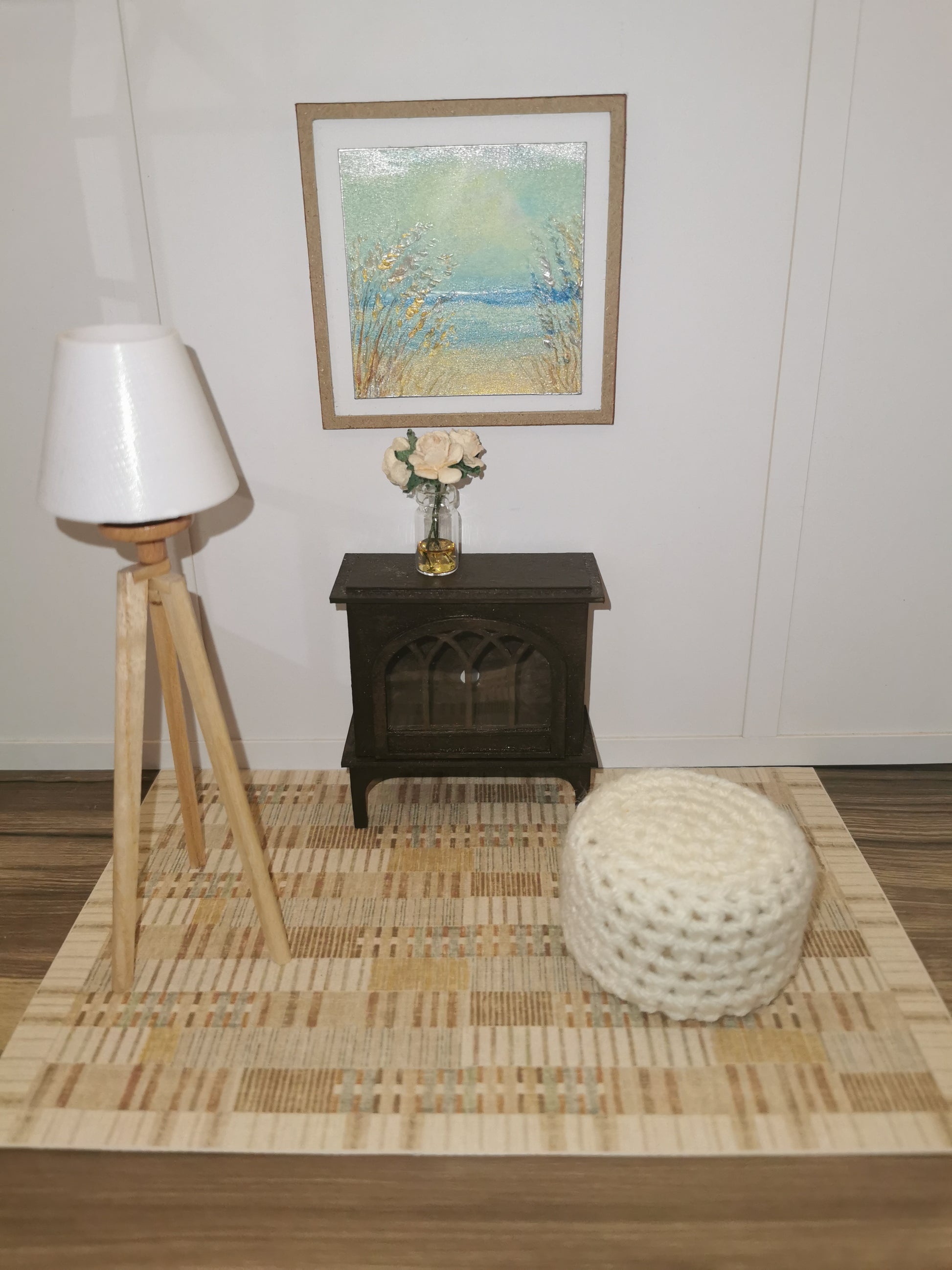 Cream Crochet Footstool/Ottoman | 1:12th Scale | Handmade