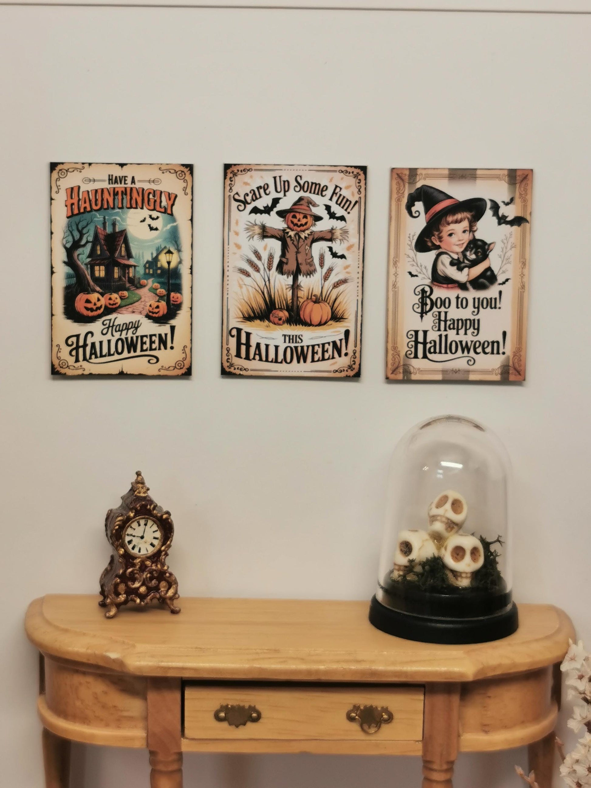Dolls House Vintage Halloween Wall Art Prints | Set of 3 | 1:12th Scale | Handmade | HW2