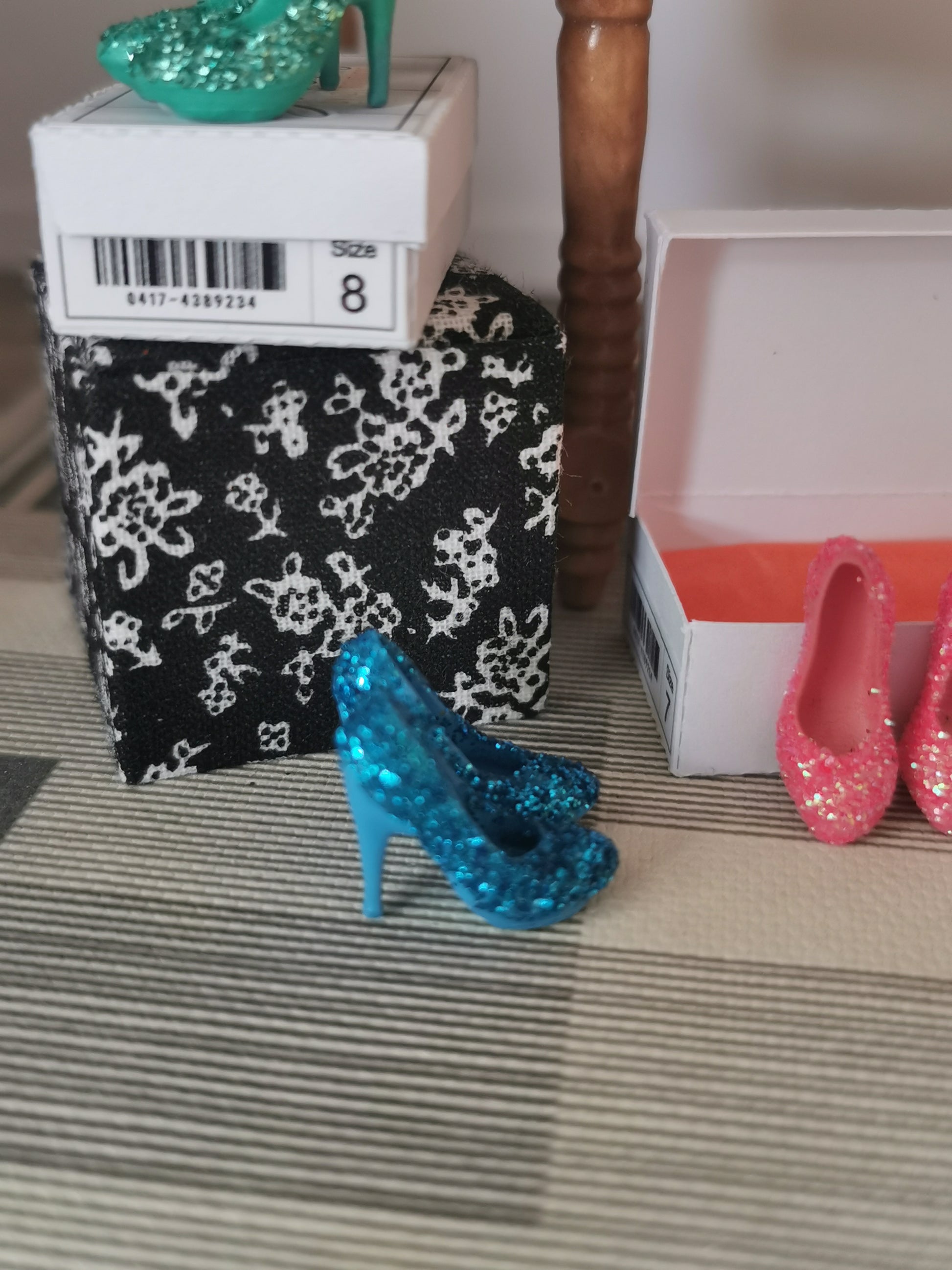 Glitter Heeled Platform Shoes with Box | 1:12th Scale | Handmade