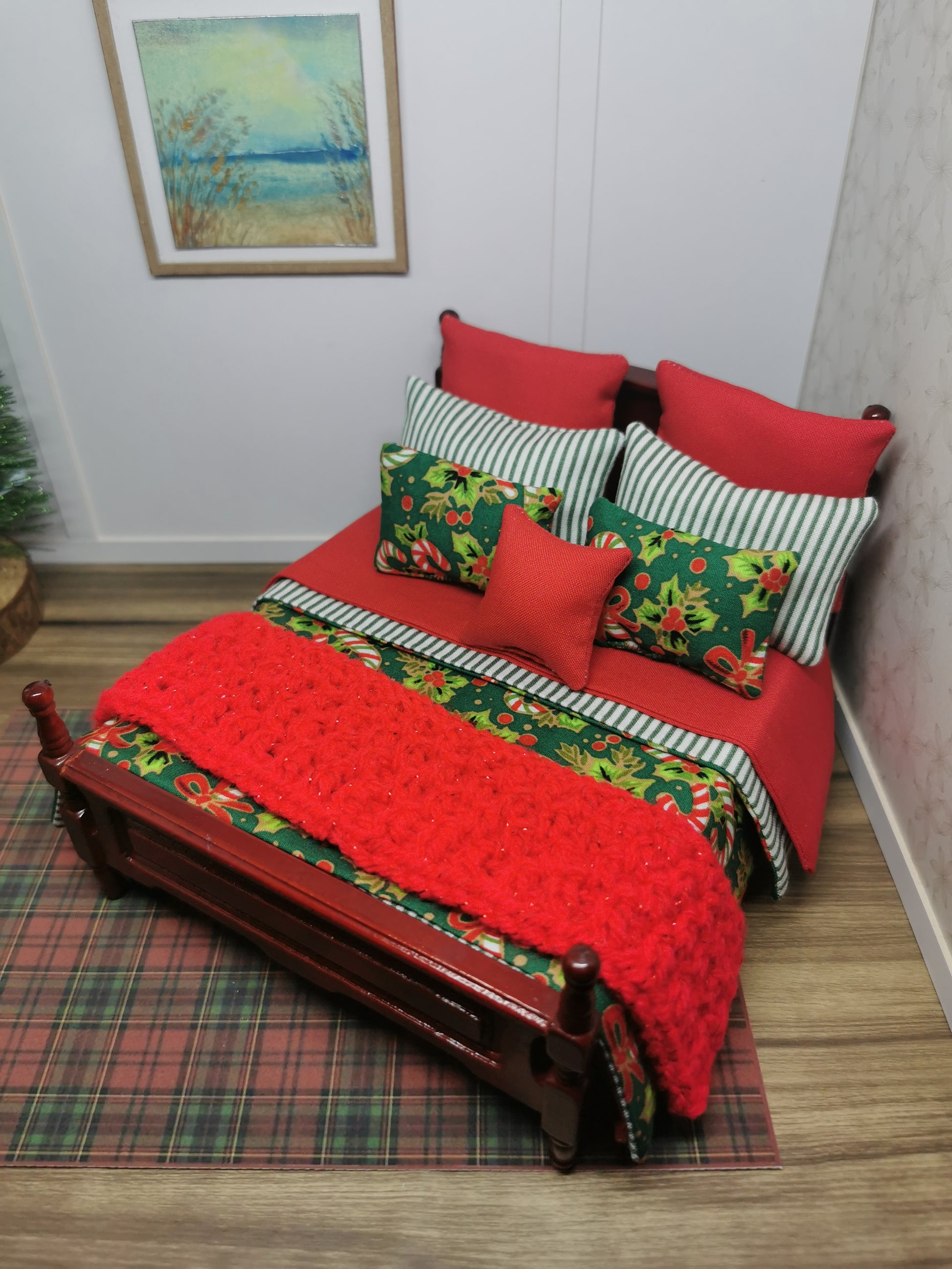 Green Candy Cane Christmas Dressed Bed | 1:12th Scale | Handmade