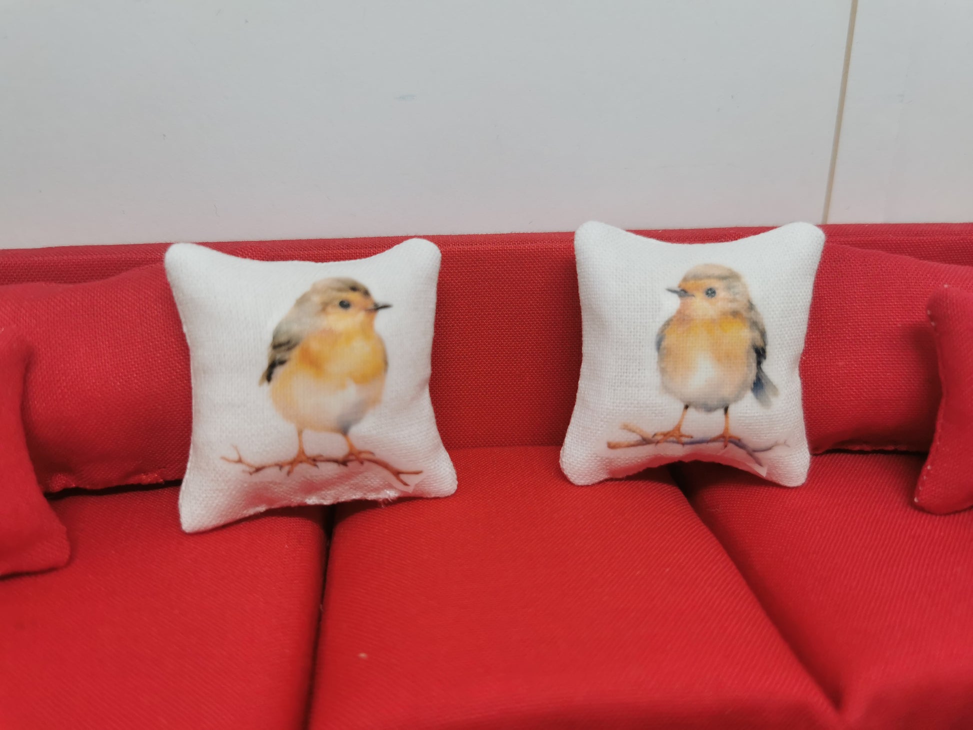 Robin Christmas Cushions | Set of 2 | 1:12th Scale | Handmade